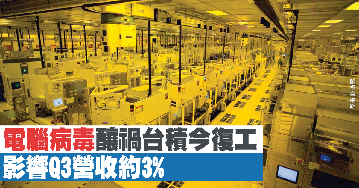 電腦病毒釀禍台積今復工 影響Q3營收約3%