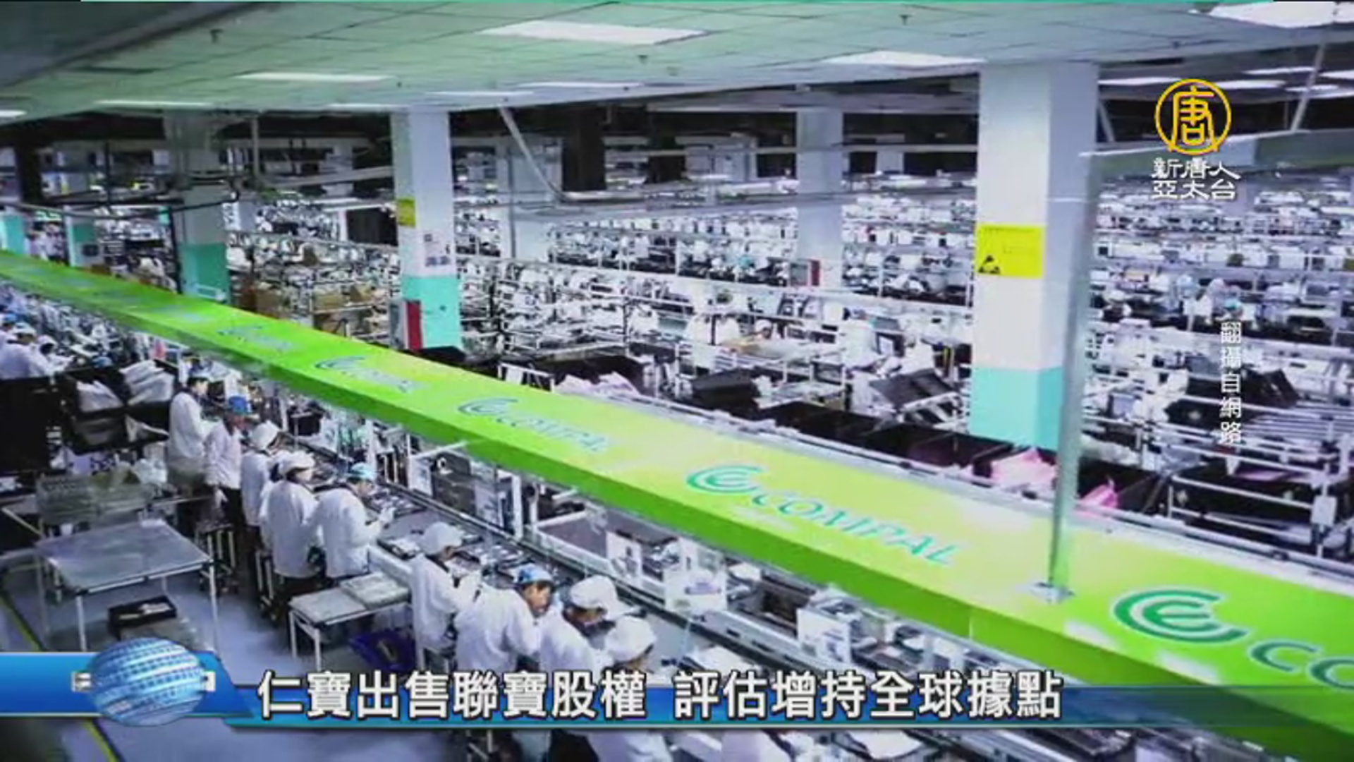 【新唐人亞太台 2018 年 08 月 07 日訊】鏡頭轉回台灣,仁寶今天董事會通過,將以 2.57 億美元,出售與聯想合資公司聯寶 的49% 股權,而少了與聯想的合資關係,仁寶減少合肥生產基地,不過公司高層強調,在全球都有布局生產據點,對產能 沒有影響。