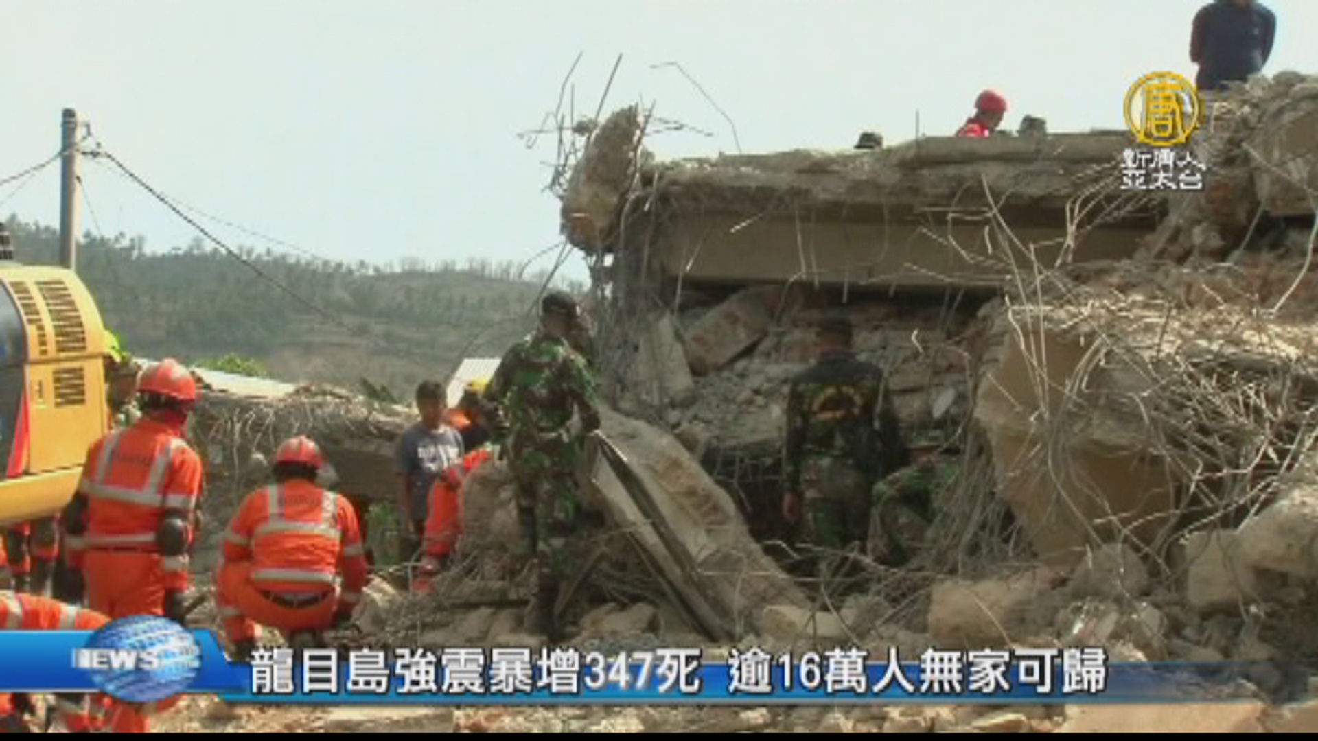 【新唐人亞太台 2018 年 08 月 09 日訊】歡迎回來。繼續來關心,印尼龍目島,周日遭規模6.9強震重創,根據印尼國營媒體最新消息,目前死亡人數攀升至347人,有1447人受傷,超過16萬人無家可歸。當局仍在廢墟裡搜尋,希望能找到倖存者。印尼政府7日估計,龍目島有八成建築物毀損,將近2萬人亟待救援,不過,救援人員很難抵達災區。