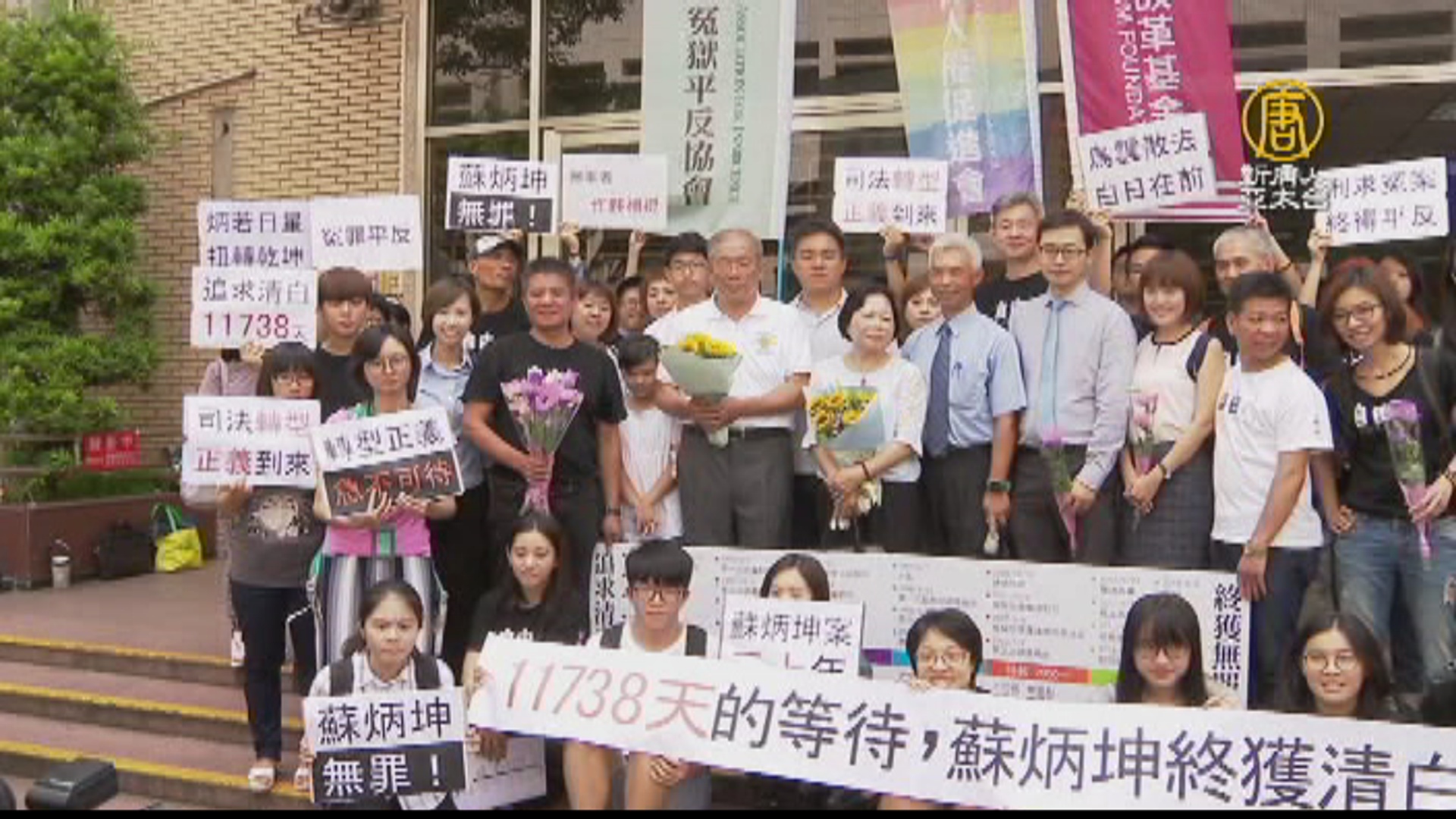 【新唐人亞太台 2018 年 08 月 09 日訊】再來帶您看到,台灣的司法首例。32年前,遭指控犯下新竹銀樓搶案的蘇炳坤,沉冤得雪,高等法院再審宣判蘇炳坤無罪,同時也指出檢方當時草率收案,對蘇炳坤受的冤屈感到心疼與不捨,蘇炳坤聽到結果激動拭淚,但他說他開心不起來,因為遲來的正義來的太晚,他的人生 已經回不來了。