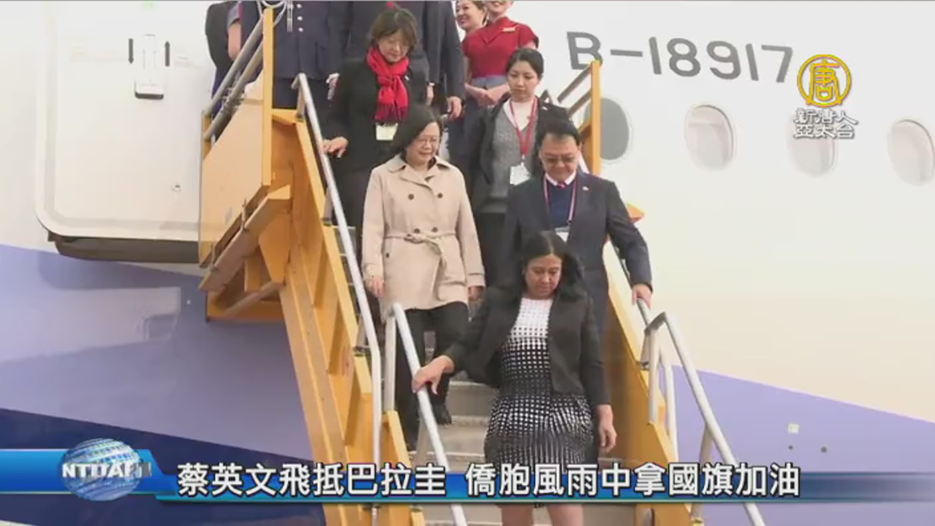 蔡英文飛抵巴拉圭 僑胞風雨中拿國旗加油