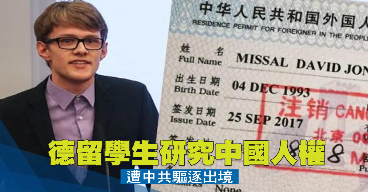 現年24歲的德國學生穆達偉(David Missal),在8月12號星期天,依依不捨的被迫登上飛機,離開中國。