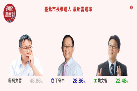 台北市長參選人 最新當選率。(網路溫度計提供)