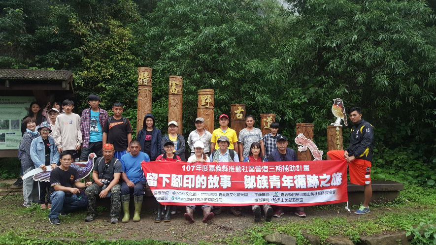 山美部落年輕人在長老的帶領下,走訪特富野古道。(嘉義縣文化觀光局提供)