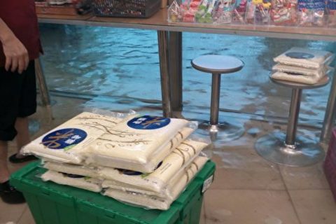 高雄鳳林宮前統一超商淹水。(小港區鳳興里里長洪富賢提供)