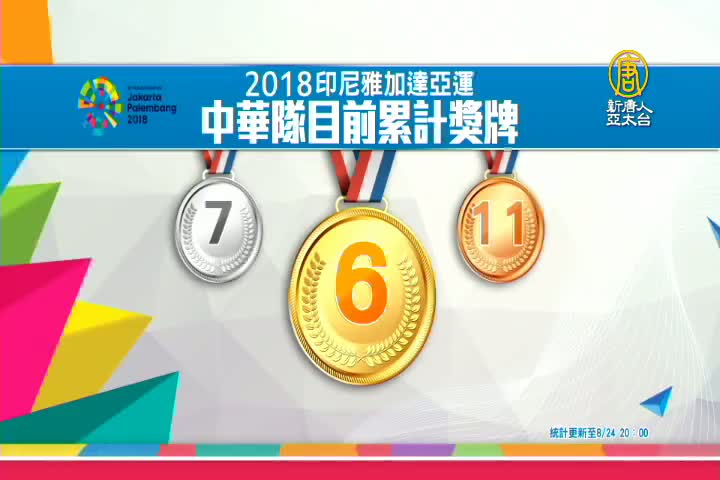 2018-08-23 20:58:20歡迎回來。帶您關心,今天中華隊選手們,在亞運的表現,真的非常亮眼,也讓中華隊在獎牌榜上,升了好幾個名次。目前共累積5金、6銀、11銅牌。除了體操鞍馬李智凱、舉重郭婞淳都拿下金牌。划船、輕艇、體操地板三項目各拿一銀牌,銅牌則有網球女單、卡巴迪女團以及體操,三項。在所有參賽國家中,獎牌總數,排名第八。