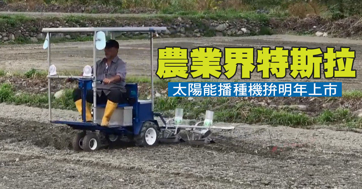 由農委會研發,全台第一台太陽能播種機,以往傳統人工播種方式,每公頃要花上30個小時,但透過這台太陽能播種機,只需要2個小時,提升15倍的速度。