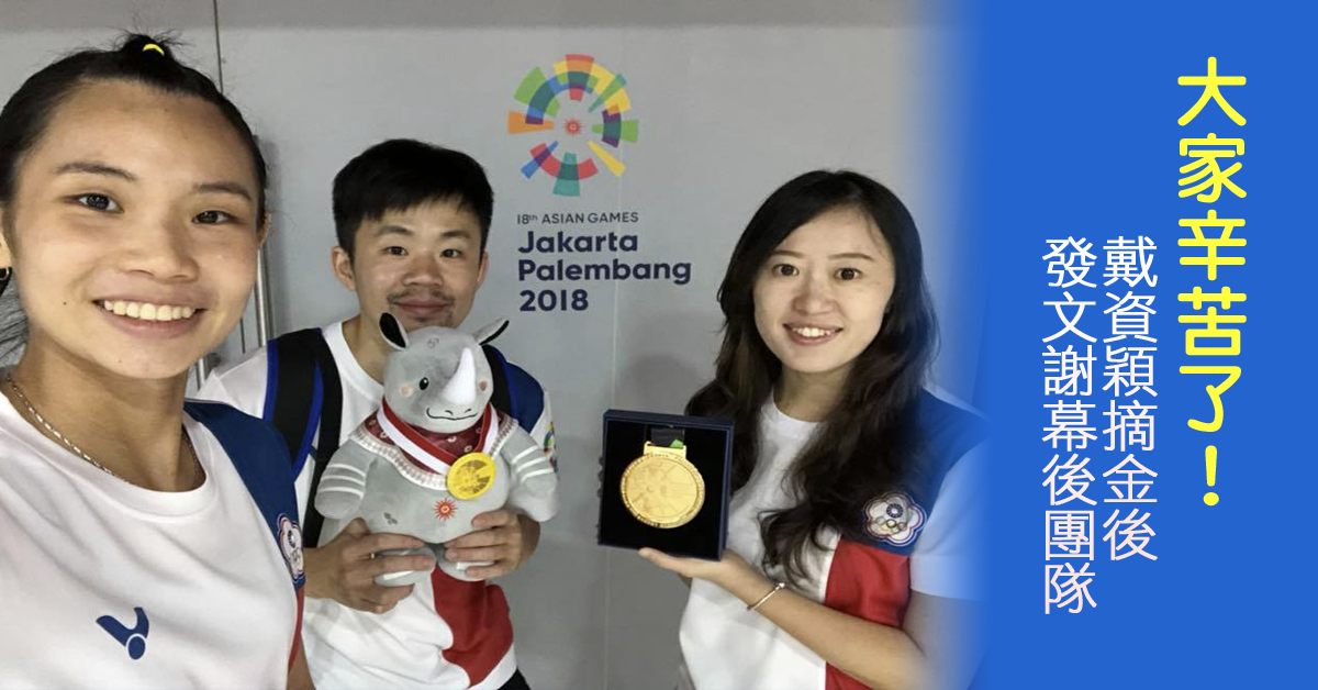 【新唐人亞太台 2018 年 08 月 29 日訊】星期二,羽球球后戴資穎,在雅加達亞運女單決賽,拿下金牌。締造中華羽球隊亞運史上最好成績,就在台灣民眾都在為她歡呼慶祝時,今天她在臉書和IG,更新了照片,感謝所有幕後團隊準備有力的後勤支援。總統蔡英文也在下面留言感謝小戴。