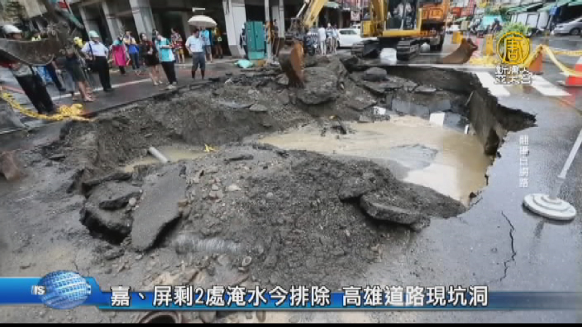 【新唐人亞太台 2018 年 08 月 30 日訊】再來看到,823豪雨造成南部嚴重水災,到今天已經是第八天,中央災害應變中心上午指出,全臺目前只剩下嘉義縣布袋鎮考試里,與屏東縣林邊鄉中山路還有積水,今天將完成這二處的退水任務。另外,高雄市積水退去後,疑似因豪大雨淘空地基,多處道路出現坑洞,三民區義華路與正忠路口,今天凌晨發生道路坍陷,出現長達10多公尺的坑洞,附近里長趕緊通知警方封鎖坍方道路,高雄市政府水利局也在上午趕緊灌漿維復中。