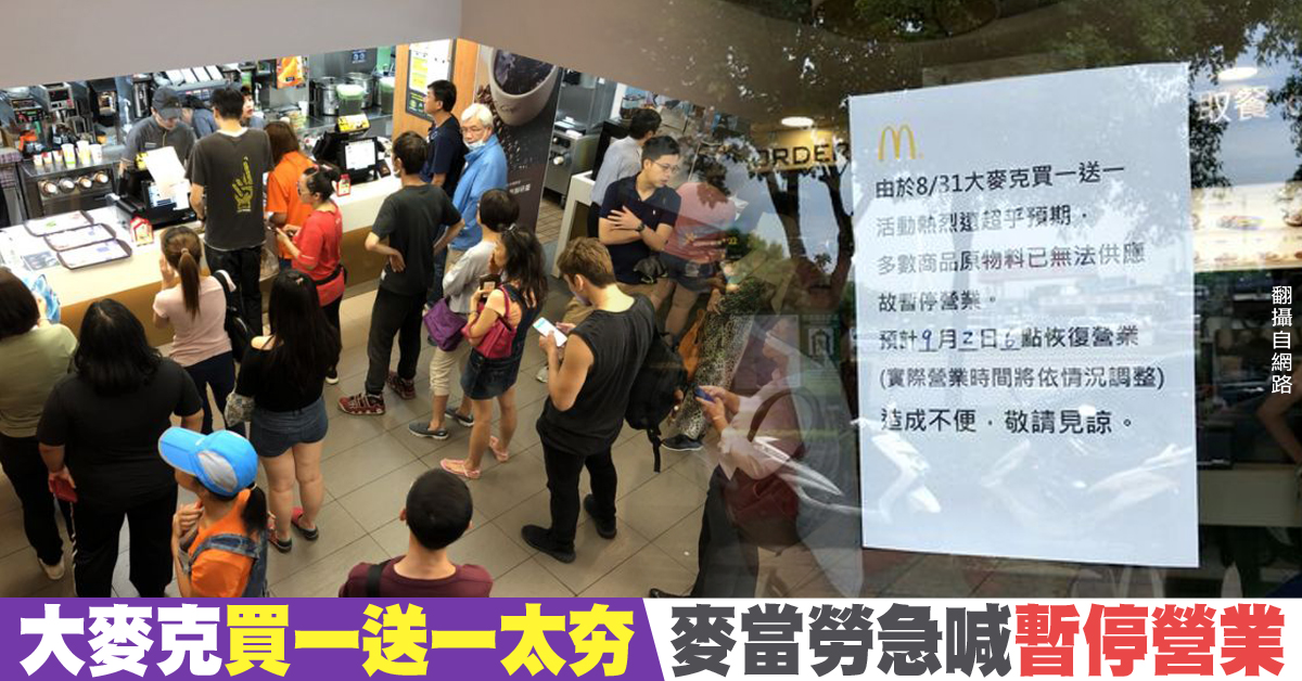 大麥克買一送一太夯 麥當勞急喊暫停營業