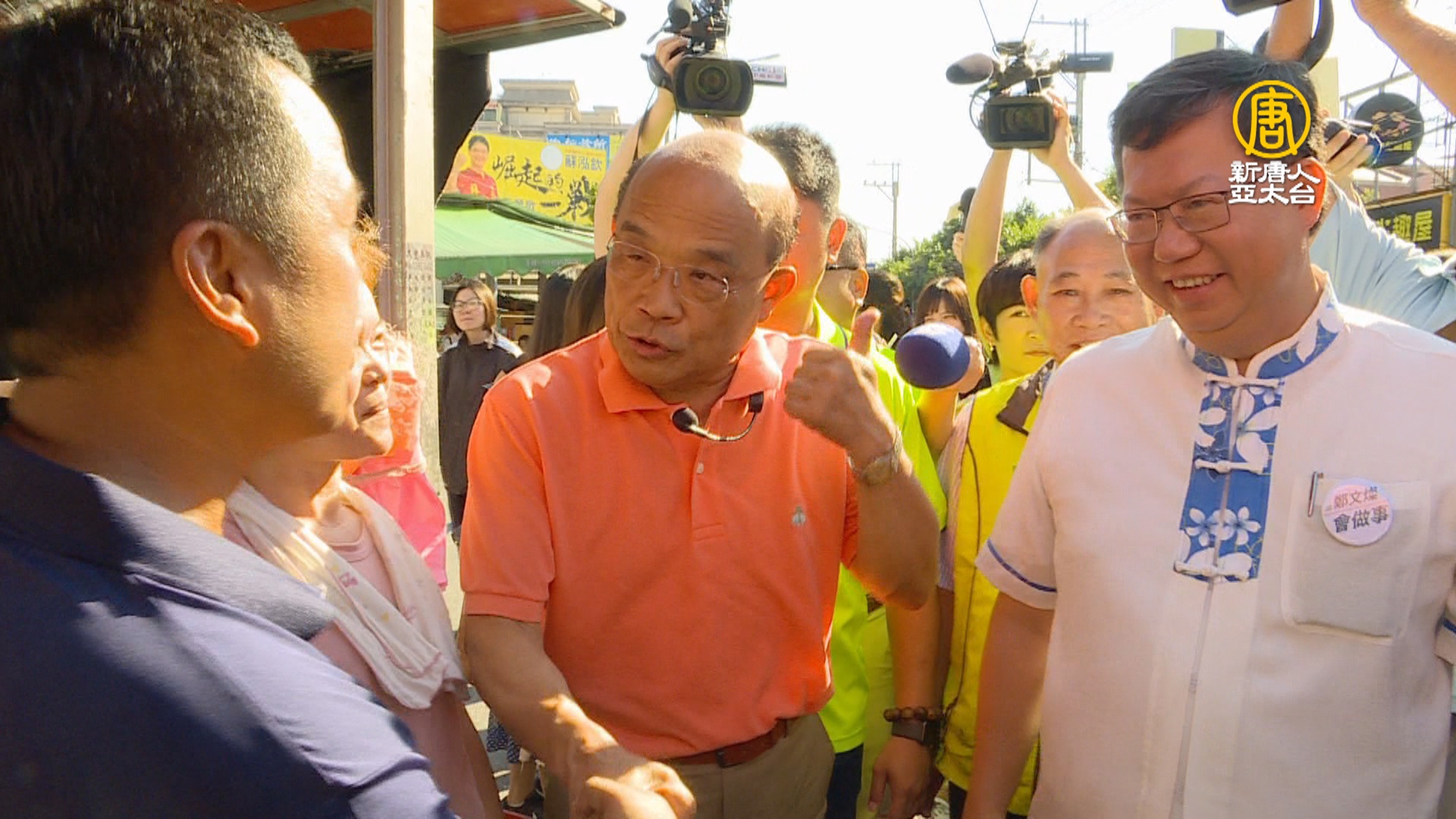 【新唐人亞太台 2018 年 09 月 04 日訊】桃園市長鄭文燦今天(9月4日)早上來到新北市鶯歌菜市場和蘇貞昌合體掃街,也象徵新北桃園共同生活圈合作,兩人不但互相拉抬,鄭文燦還批評蘇貞昌的對手侯友宜不懂市政,而且現在變得會講政治語言,和過去警察英雄形象不一樣!