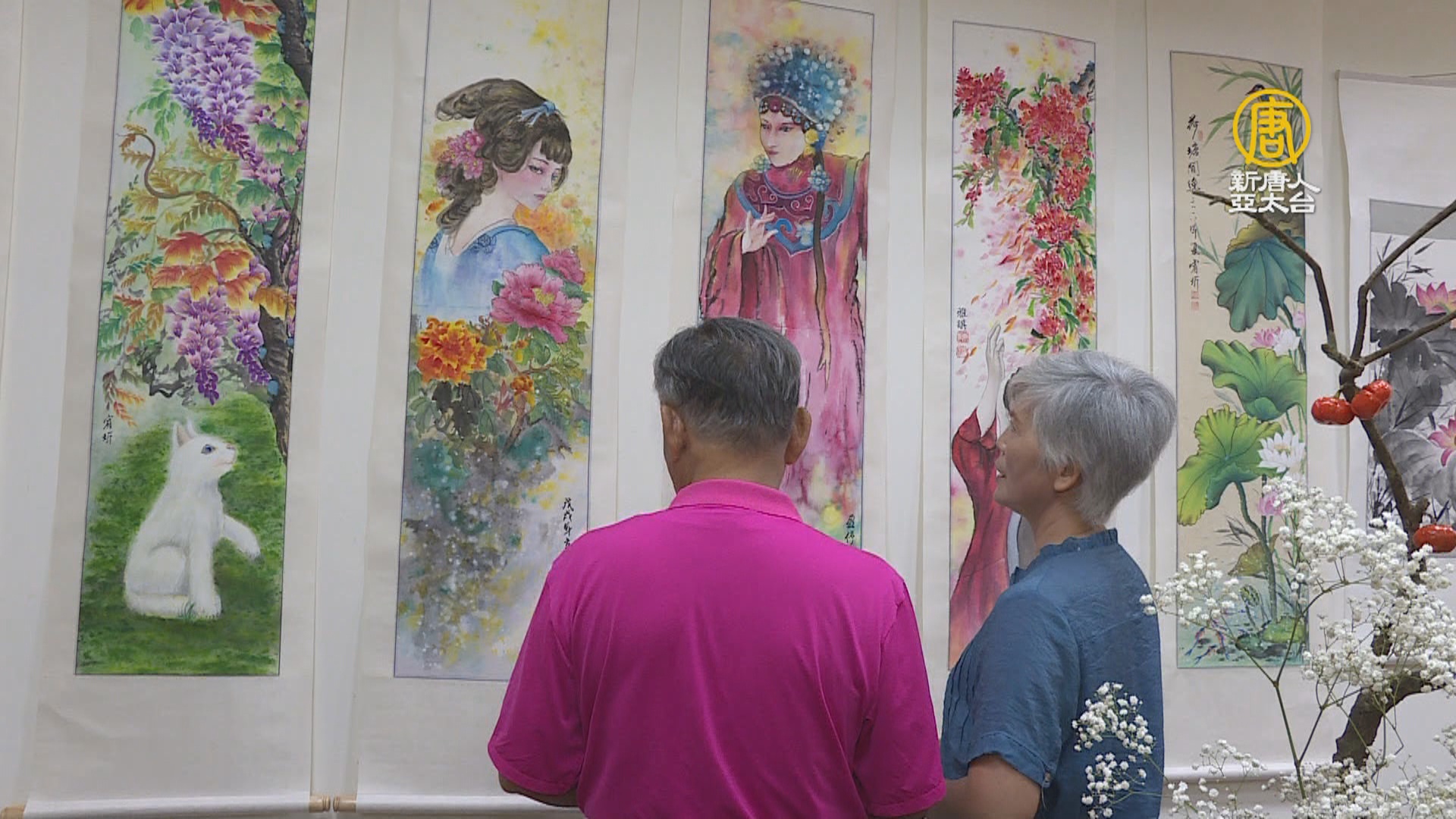 【新唐人亞太台 2018 年 09 月 04 日訊】接著看到藝術家的介紹。書畫家黃沁杰的作品,在台灣、大陸以及日本等地獲獎無數,這次舉辦畫展,包含5、60年代以及90年代學員的創作,兩個世代互相爭鋒,作品豐富多元。