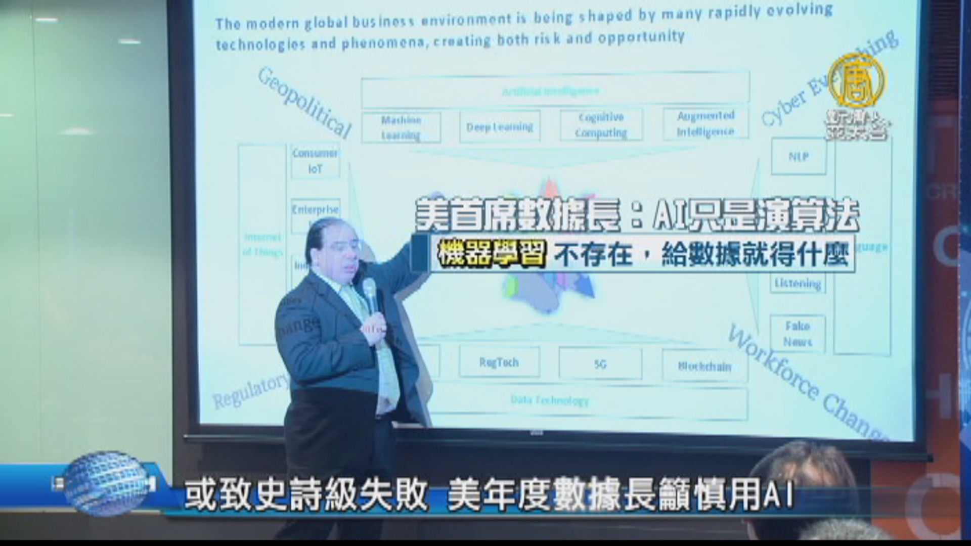 【新唐人亞太台 2018 年 09 月 07 日訊】科技趨勢新聞來看到,AI的風險與機會,在科學界論戰多年。美國2018年度首席數據長6日在台北演講,他認為企業對AI的期待超過現實,AI能減輕人類一些重複作業的負擔,但若想用來諮詢卻要非常小心,可能帶來蔓延全球的大失敗與對立衝突。