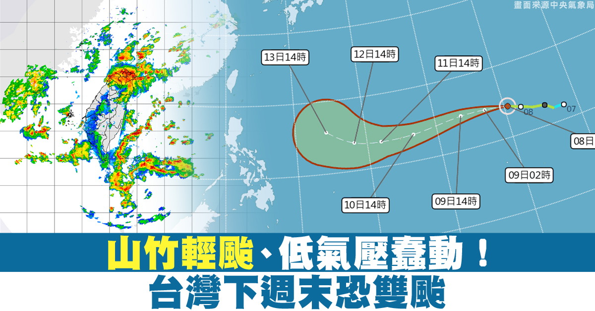 山竹輕颱、低氣壓蠢動!台灣下週末恐雙颱