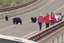 2015-05-24 15:35:16照顧小孩是媽媽的天性,黑熊也不例外,在黃石國家公園(Yellowstone National Park),一隻黑熊媽媽帶著三隻寶寶在橋上玩耍,原本慢慢跟在遊客後面,但卻突然猛追起來,嚇的遊客驚慌失措,怎麼回事,趕快來看看。