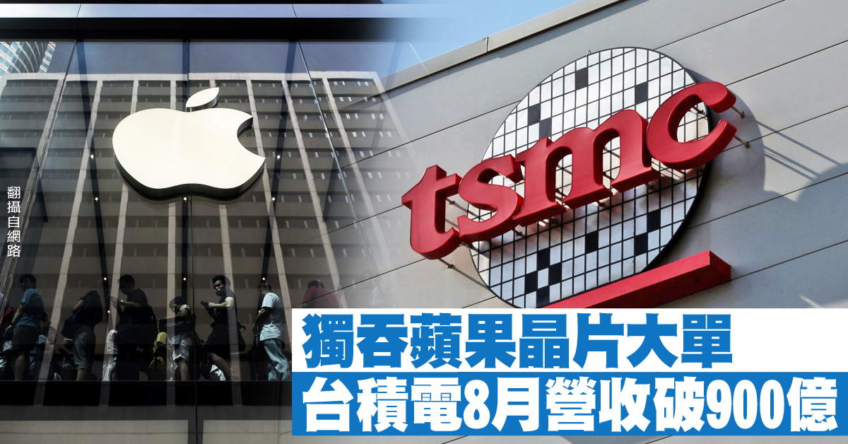 獨吞蘋果晶片大單 台積電8月營收破900億