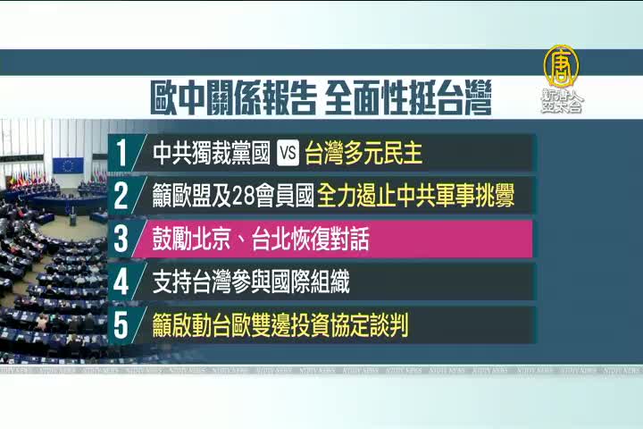 【新唐人亞太台 2018 年 09 月 13 日訊】譴責中共,支持民主台灣,儼然成了國際趨勢。來看到,歐洲議會12日大會,議員高分貝抨擊中共霸道,壓倒性比數通過「歐中關係報告」決議,強烈要求中共停止對台灣軍事挑釁,也廣泛支持台灣的國際參與。中華民國外交部表示感謝,也對歐盟的「連結戰略」,提出台灣樂意參與的幾項前提。