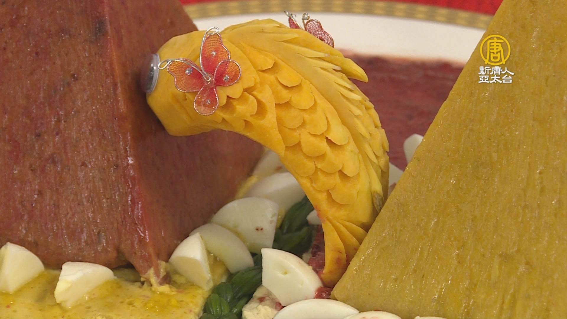 廚師 李仁堅:「有的年輕人帶著老人家來我們餐廳用餐,他們用餐的時間短,硬的話又沒辦法進食。那我就創意魚鱗凍來,把它絞碎用果汁機把它絞碎,把它作成一個芋泥雙塔,有鹹的有甜的,讓老人家都能接受。」