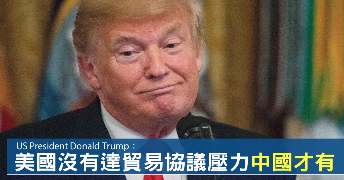 日前《華爾街日報》一篇報導指出,川普面對11月中期選舉等政治壓力,迫使他在選前緩和貿易戰。但川普13日推文說,美國並沒有與中國達成貿易協議的壓力,中方才有壓力。