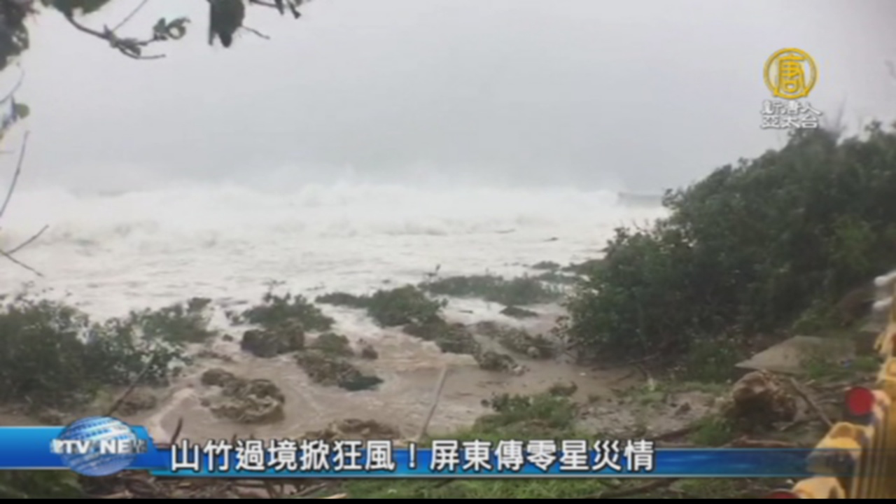 【新唐人亞太台 2018 年 09 月 15 日訊】好,再來看到,颱風山竹外圍環流,影響台灣東部地區,台東尚武漁港傍晚,更出現龍捲風,屏東則是傳出零星災情。