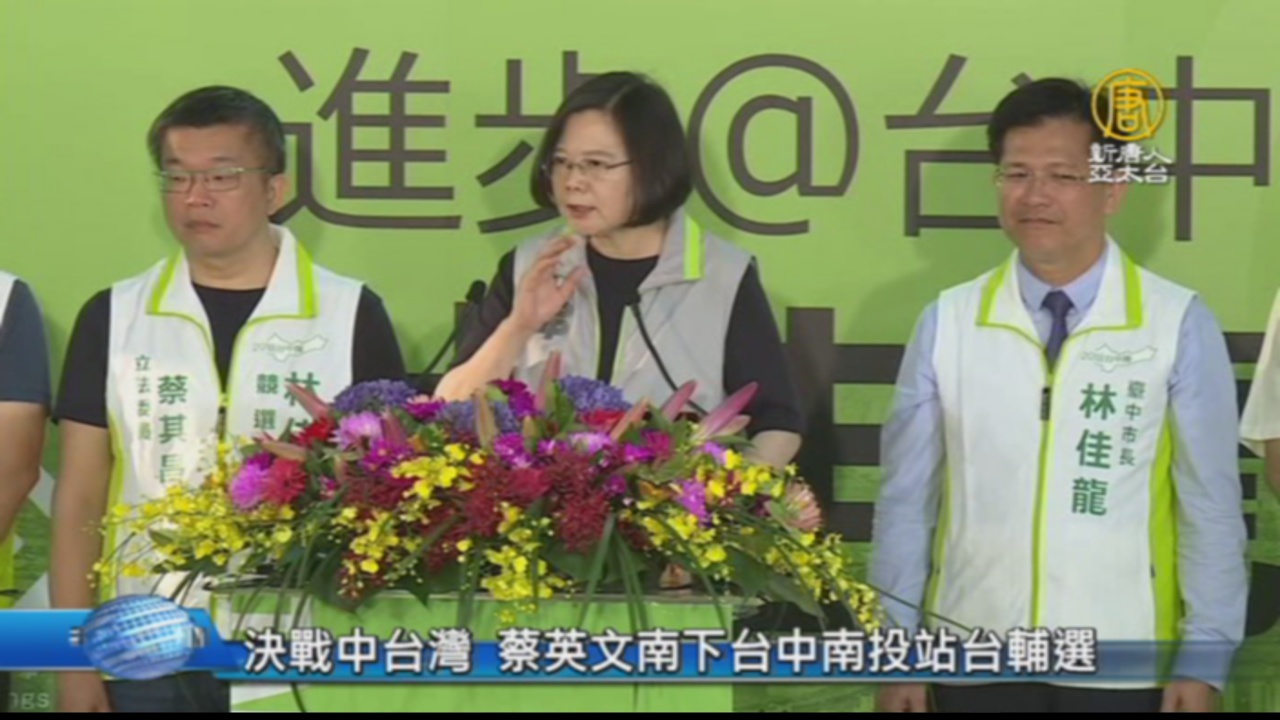 【新唐人亞太台 2018 年 09 月 15 日訊】距離年底選舉剩69天,民進黨主席蔡英文,輔選行程不斷,今天(15)分別出席台中市長林佳龍,以及南投縣長參選人洪國浩的競選總部成立大會。