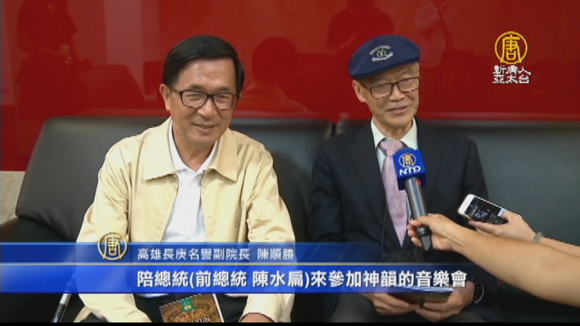 高雄長庚名譽副院長 陳順勝:「今天很高興就是可以,陪總統(前總統 陳水扁)來參加神韻的音樂會,那我們前半場的部份,聽了很感動,很感動,因為有關東方跟西方的音樂把它融和在一起,對於總統一定有相當大的內心的迴響。」