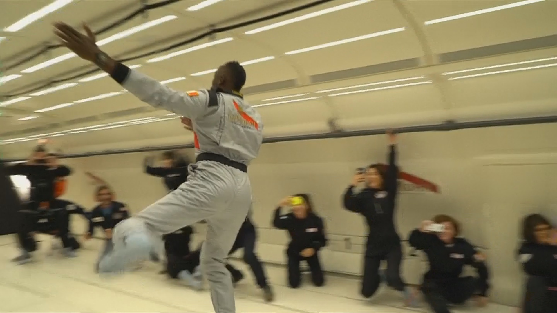 男子百米世界紀錄保持人,牙買加的閃電波特(Usian Bolt),是地表上跑的最快的男人。他在登上模擬無重力的飛機之後,與太空人來場短跑競賽,依然可以輕鬆拿下冠軍。