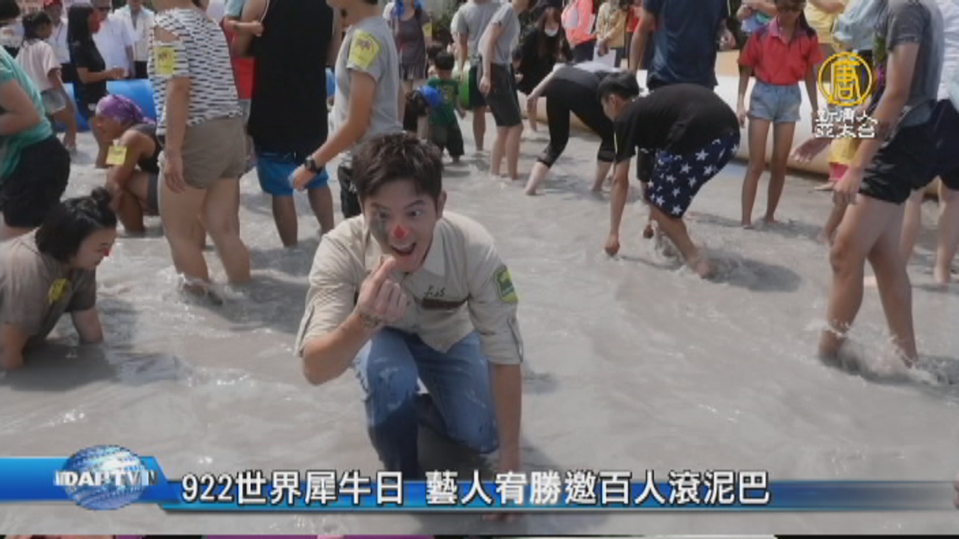 【新唐人亞太台 2018 年 09 月 22 日訊】歡迎回來,今天(22日)是922世界犀牛日,藝人宥勝擔任莊福文教基金會代言人,號召百人一起到六福村,畫上紅鼻子,模擬犀牛最愛的「滾泥巴」SPA,希望為犀牛保育發聲,同時宣導孩子們保育動物的理念!