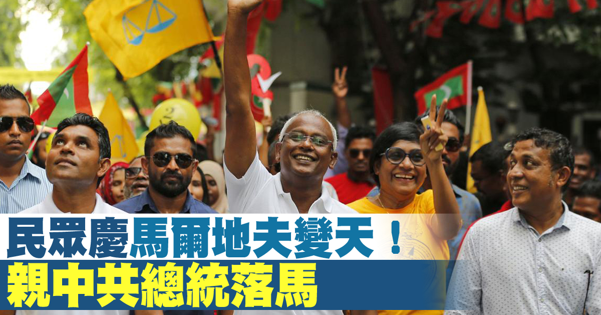 2018-09-24 20:38:58再來看到,度假勝地馬爾地夫,總統大選結果出爐,選委會今天早上公布,反對派聯合推舉的候選人索里以58.3%的得票率,成功擊敗現任的親共總統雅門。馬爾地夫民眾歡欣鼓舞,上街慶祝馬爾地夫變天。雅門也坦承敗選,將在11月中旬移交政權。