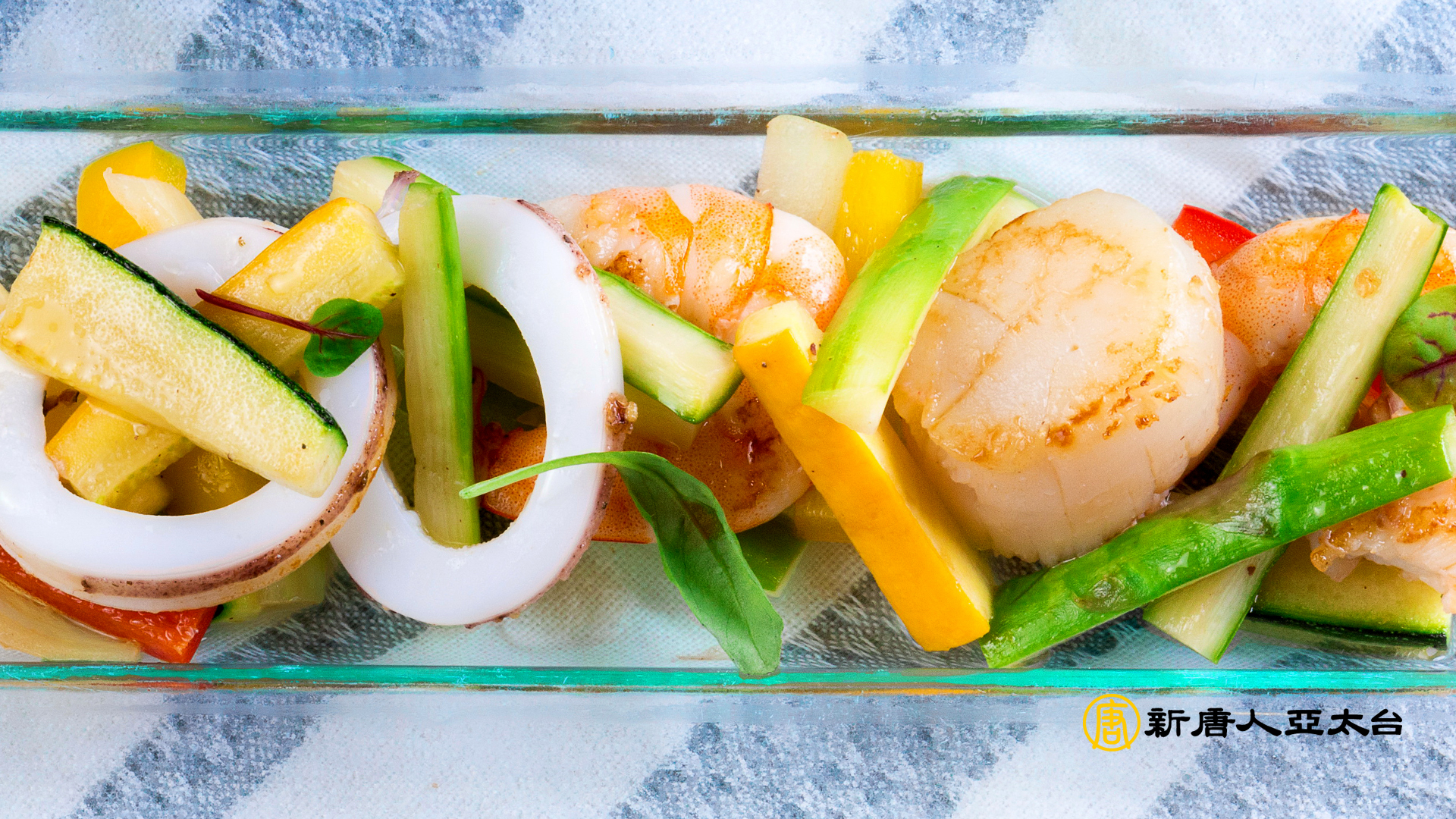 【輕食養生】果漾醋彩蔬熱拌海鮮/嫩煎肋眼牛配芝麻葉佐蒜味醋醬│廚娘香Q秀(481)