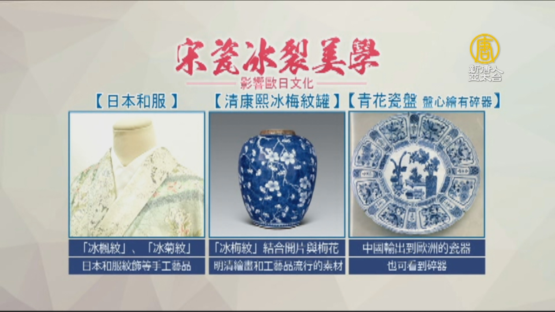 【新唐人亞太台 2018 年 09 月 25 日訊】好,四百年前的葡萄牙古沈船上,有中國明朝的青花瓷器遺骸,從考古中能看見當時的全球貿易路徑,不過,其實在更早的宋代,中國的美學,已經風靡全球。「碎器」就是一個美麗的偶然,「碎器」是指瓷器釉面上有裂紋,是宋代官窯重要的外觀特徵,在明代意外成為時尚風潮。冰裂的紋路,不但受到日本推崇,成為美麗的和服紋飾,也啟發歐洲人對「馬賽克」及鑲嵌玻璃藝術的想像。