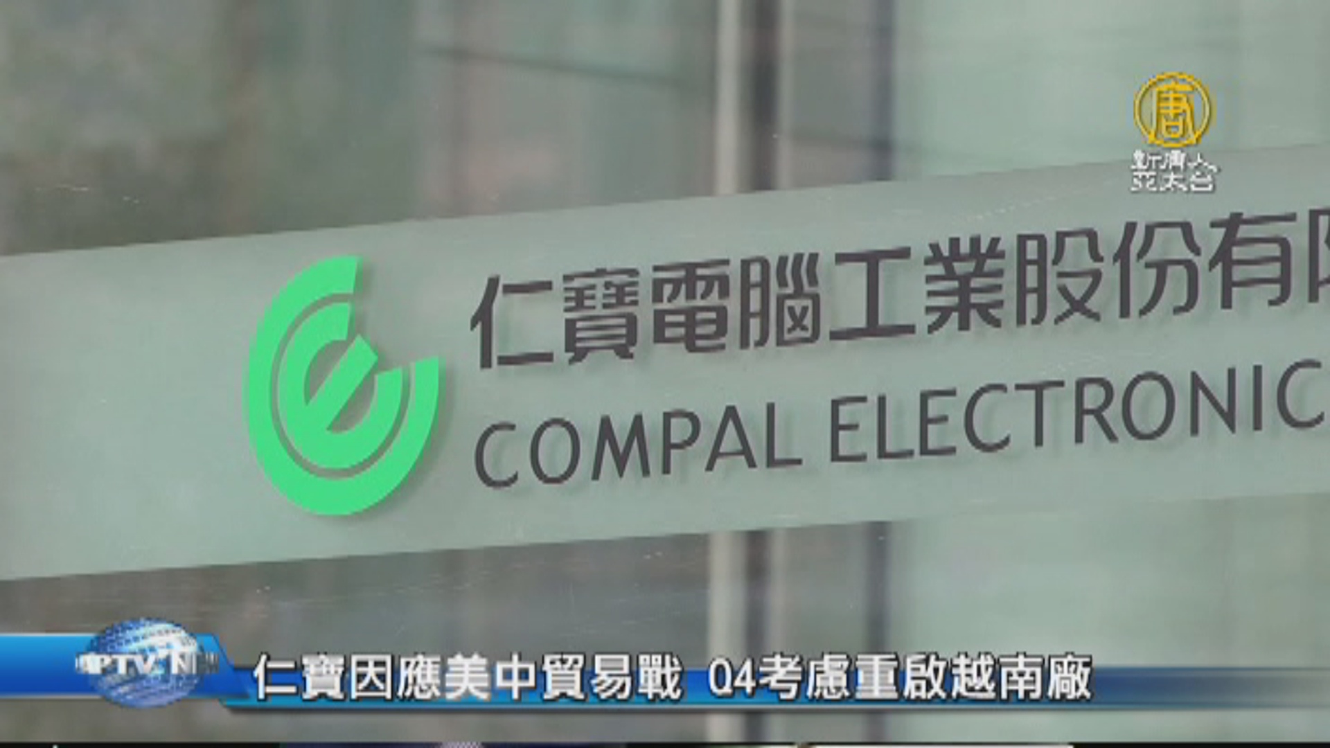 【新唐人亞太台 2018 年 09 月 26 日訊】受美中貿易戰影響,許多台商陸續撤出中國大陸,遷廠返台,台灣代工大廠仁寶,也陸續啟動備案應戰,總經理翁宗斌今天(26日)出席活動時表示,一旦美國啟動對中國2,600億美元關稅,仁寶將啟動越南廠因應,最快4到6個月就可以重啟組裝產線,相關評估在今年第4季就會決定。