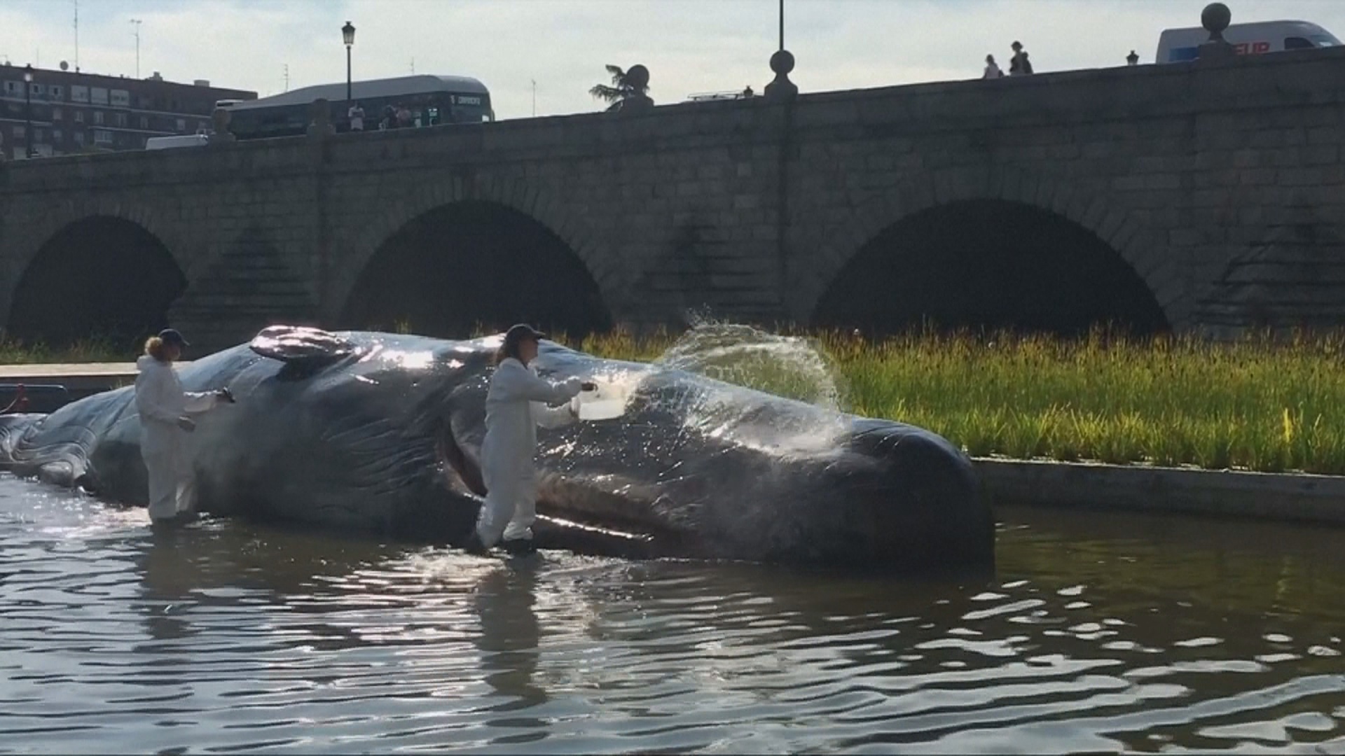 【新唐人亞太台 2018 年 09 月 27 日訊】這是真的嗎?在西班牙首都居然有一隻抹香鯨擱淺,而且看起來奄奄一息的樣子,一旁還有救援人員往鯨魚身上潑水,原來這不是真的!這是一個實際大小的裝置藝術,到底怎麼回事我們一起來看看。