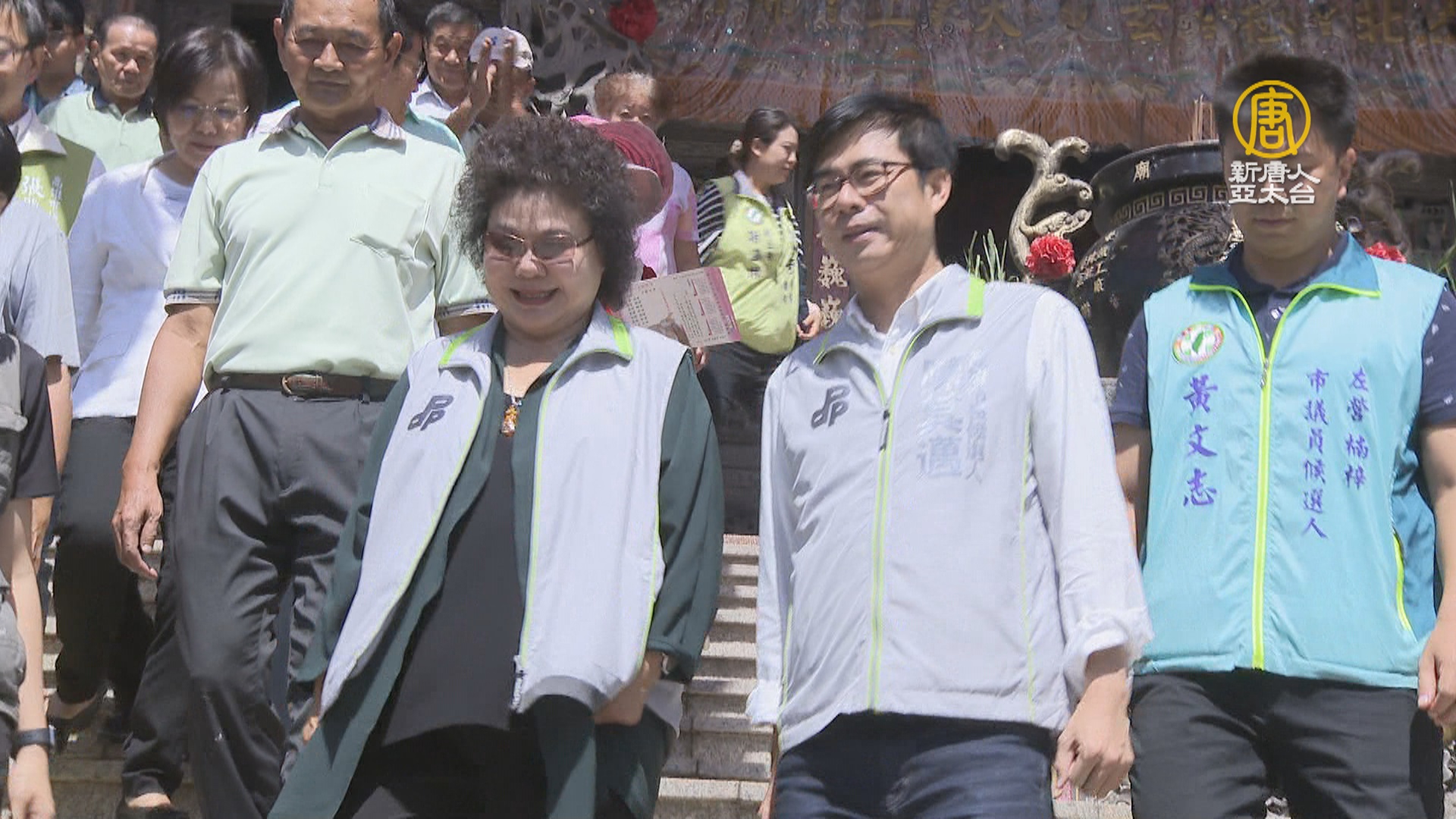 【新唐人亞太台 2018 年 09 月 29 日訊】再過不到2個月就要選舉,參選人全力衝刺不敢鬆懈。民進黨高雄市長參選人陳其邁更是卯足全力,要和國民黨的韓國瑜拉開差距。今天(9月29日)甚至請到前高雄市長陳菊來拉抬聲勢,兩人一起到左營元帝廟參拜,希望透過花媽的高人氣加持,讓民進黨在高雄市的選情穩如泰山。