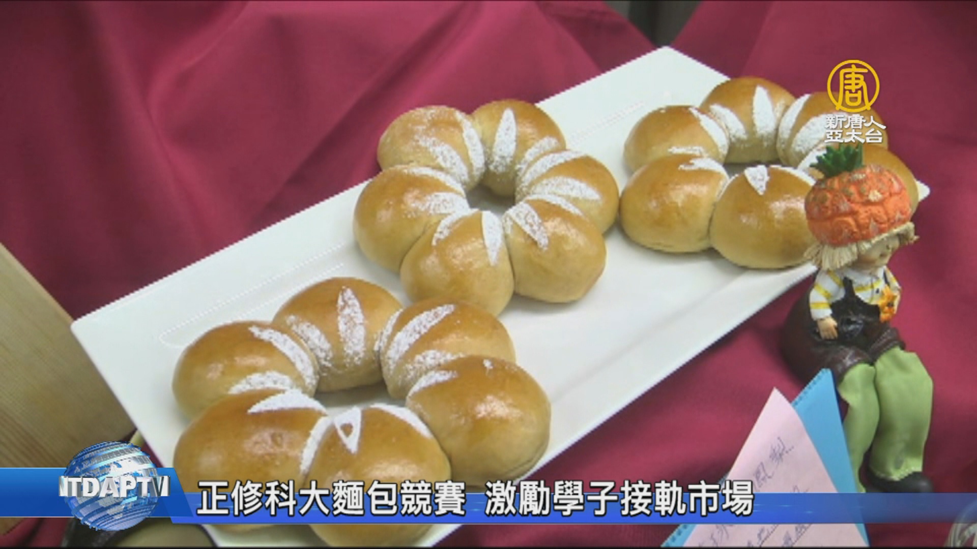 【新唐人亞太台 2018 年 10 月 01 日訊】為了推廣南部在地農特產品,正修科技大學餐飲系舉辦「創意手感麵包競賽」,來自全國13校32位好手同場競技,以在地鳳梨果乾結合法國品牌的純麥麵粉,烘焙出美味Q彈的手感麵包。