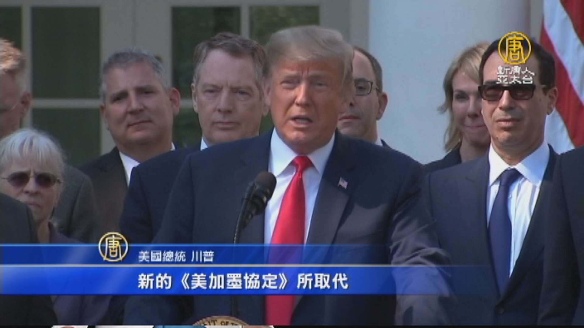 美國總統 川普:「我以極大榮幸宣布,我們成功完成談判,達成了全新的協定以終結和取代《北美貿易協定》(NAFTA),《北美貿易協定》將被這項新的《美加墨協定》所取代,簡稱為USMCA」。