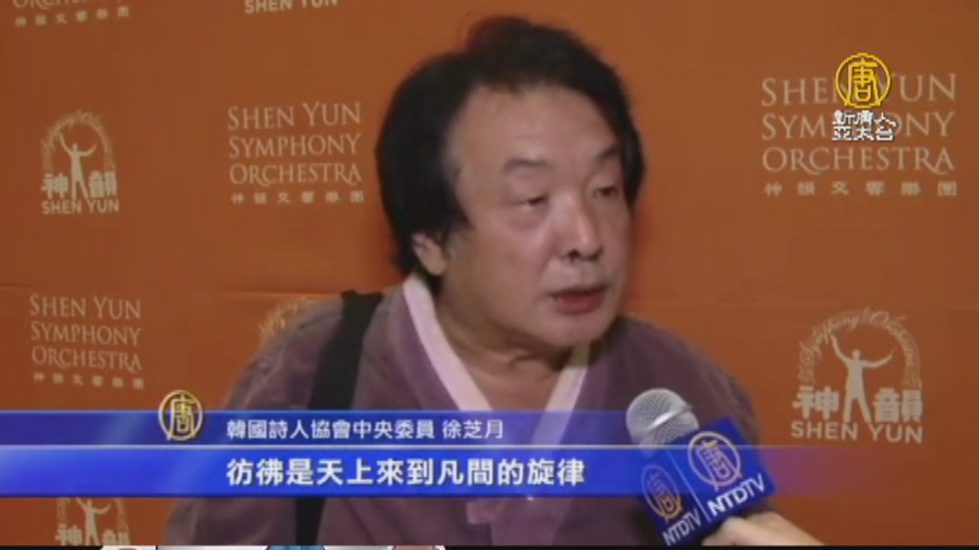 韓國詩人協會中央委員 徐芝月:「神韻讓人感動,彷彿是天上來到凡間的旋律,演奏的細膩和雄壯好像在欣賞牡丹花一樣,展現中國的龐大和東西洋樂器的旋律,帶給人類動人的樂音。」