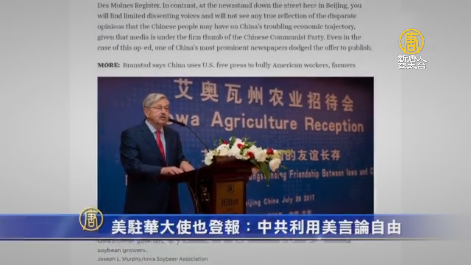 美國駐華大使特里·布蘭斯塔德(Terry Edward Branstad)9月30號在美國艾奧瓦州《得梅因紀事報》(Des Moines Register)上發表評論,回應此前中共在這家當地最大的報紙上刊登付費廣告,試圖影響美國中期選舉一事。
