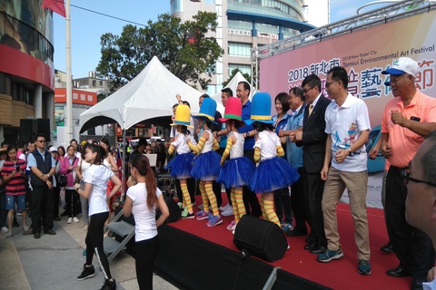 淡水環境藝術節,新北市長朱立倫及淡水區長巫宗仁帶著大家齊舞