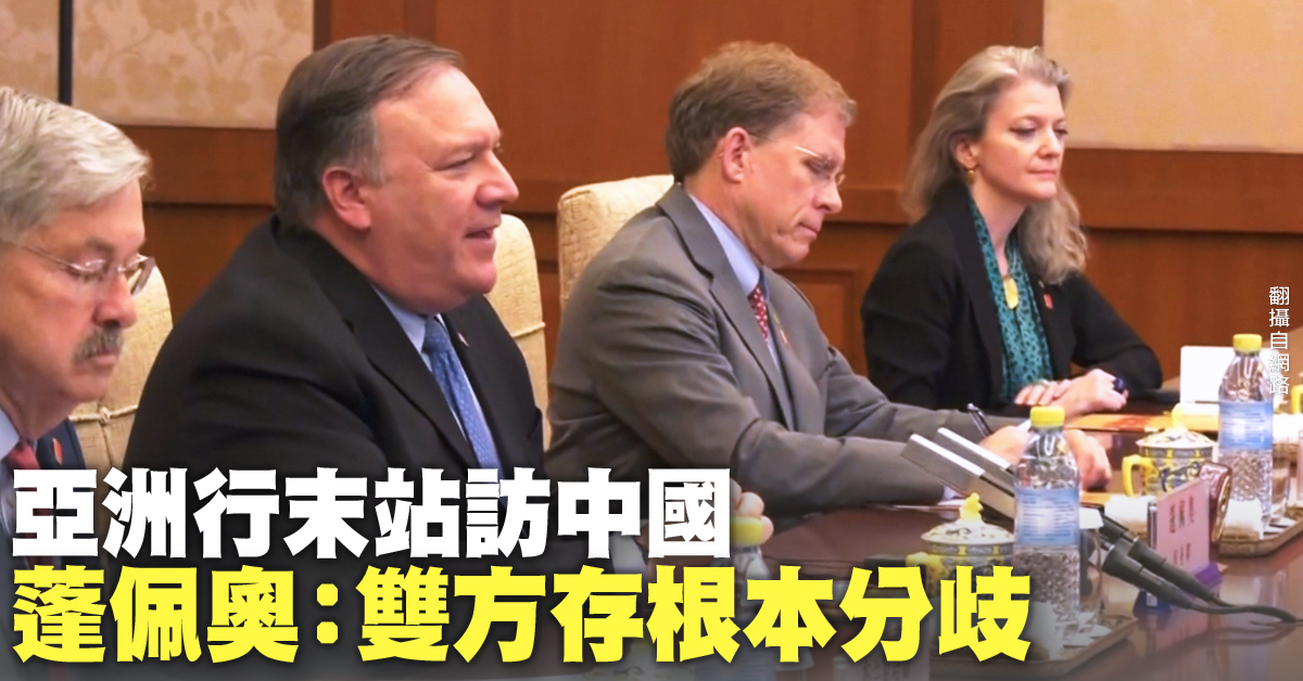 亞洲行末站訪中國 蓬佩奧:雙方存根本分歧
