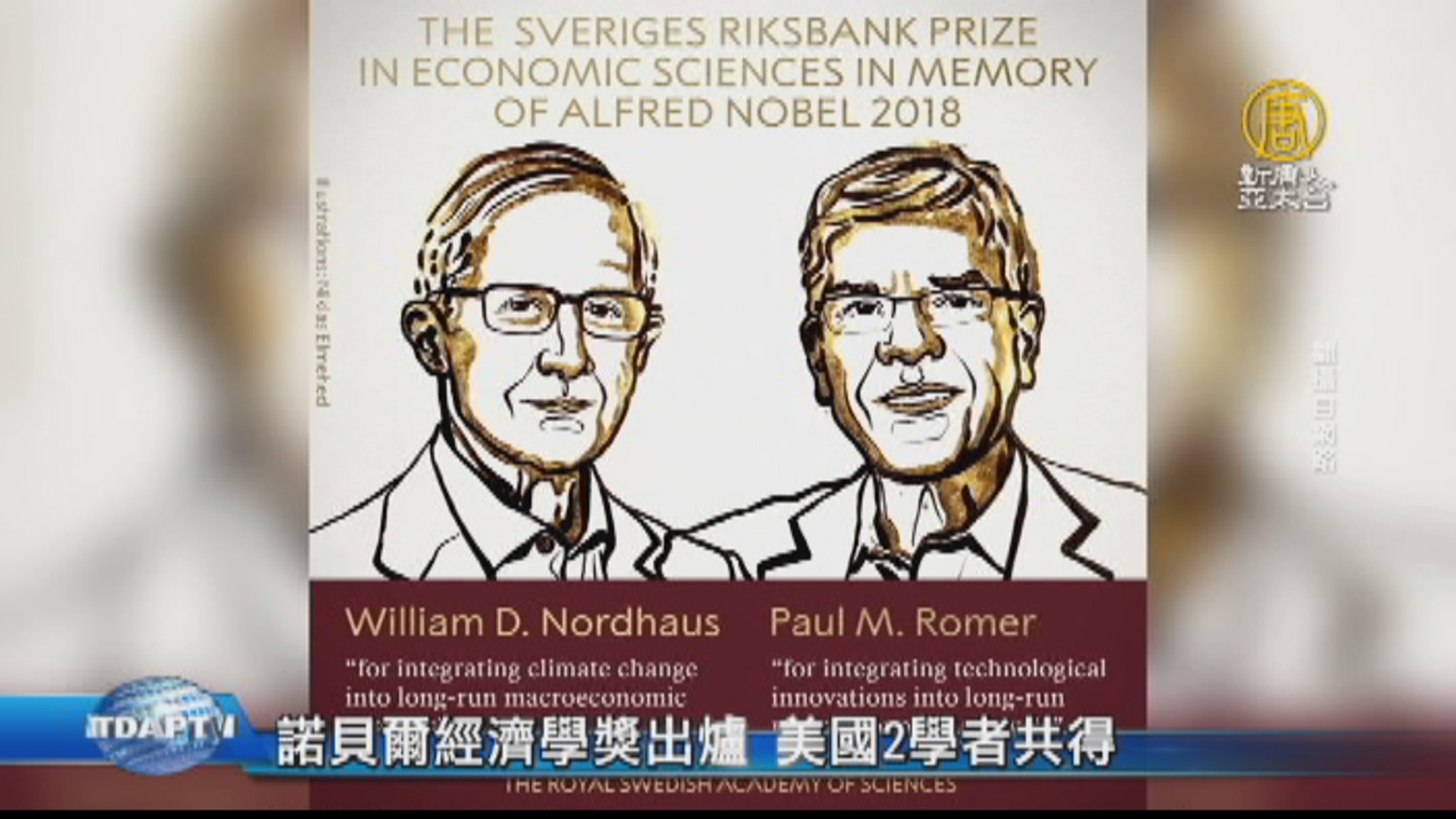 【新唐人亞太台 2018 年 10 月 08 日訊】歡迎回來。諾貝爾經濟學獎今天揭曉,得主是美國兩位經濟學者諾德豪斯與羅莫,獲獎原因是「將氣候變遷整合到長期宏觀經濟分析中」,諾貝爾委員會說,諾德豪斯和羅莫建立的模型,對經濟發展和遏制氣候變遷都有幫助。他們將宏觀經濟學帶到全球層次,處理世界上最大的一些問題。諾貝爾經濟學獎,也為2018年諾貝爾頒獎季畫下句點。