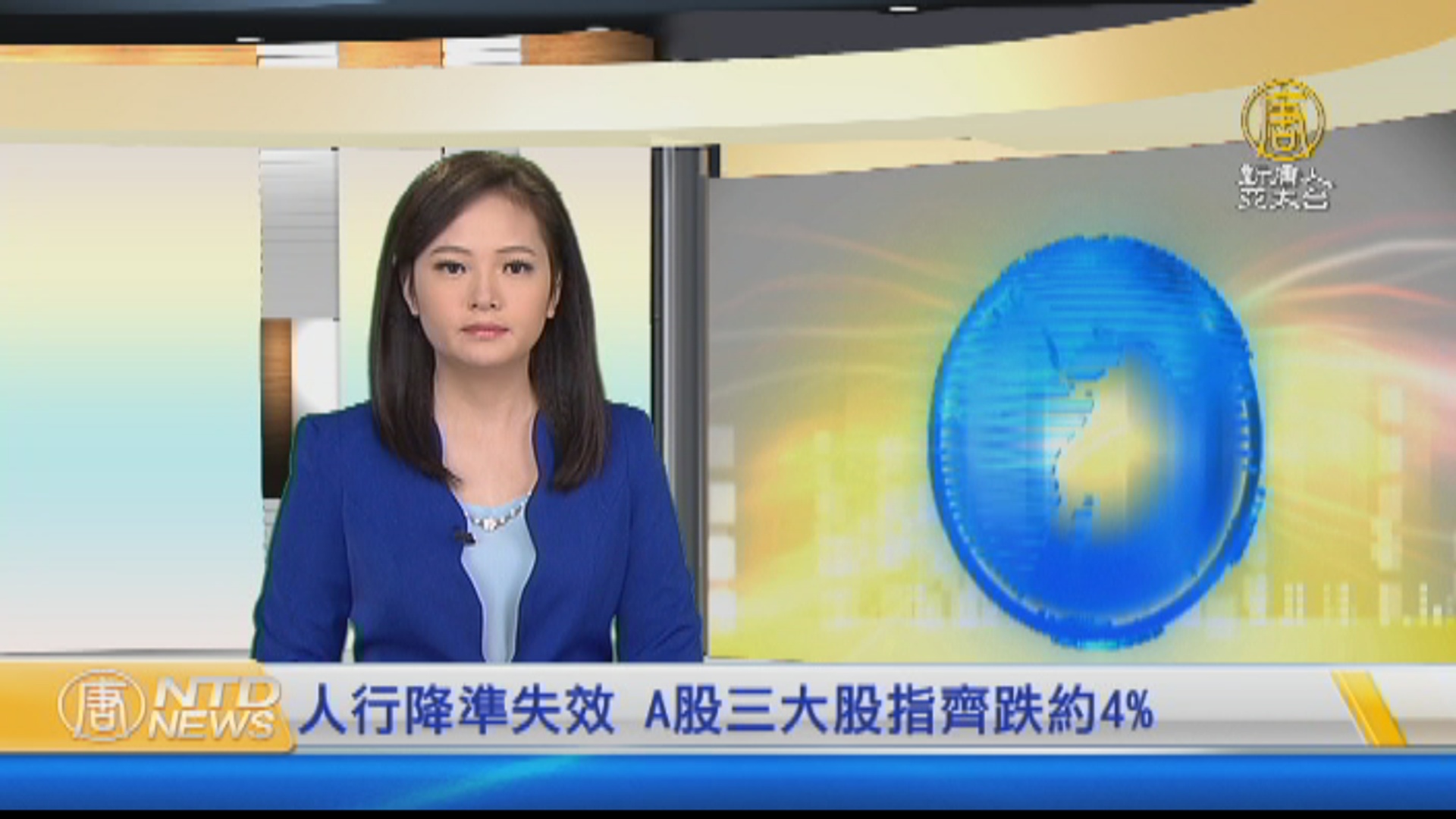 【新唐人亞太台 2018 年 10 月 09 日訊】再來看到,中國人行週日宣布降準百分之一,共釋放資金1.2兆元人民幣,不過,昨天中國A股滬指、深成指、創業板三大股指齊跌,都超過3%,外資流出近百億人民幣,顯示股市無視中國人行7日降準利多。