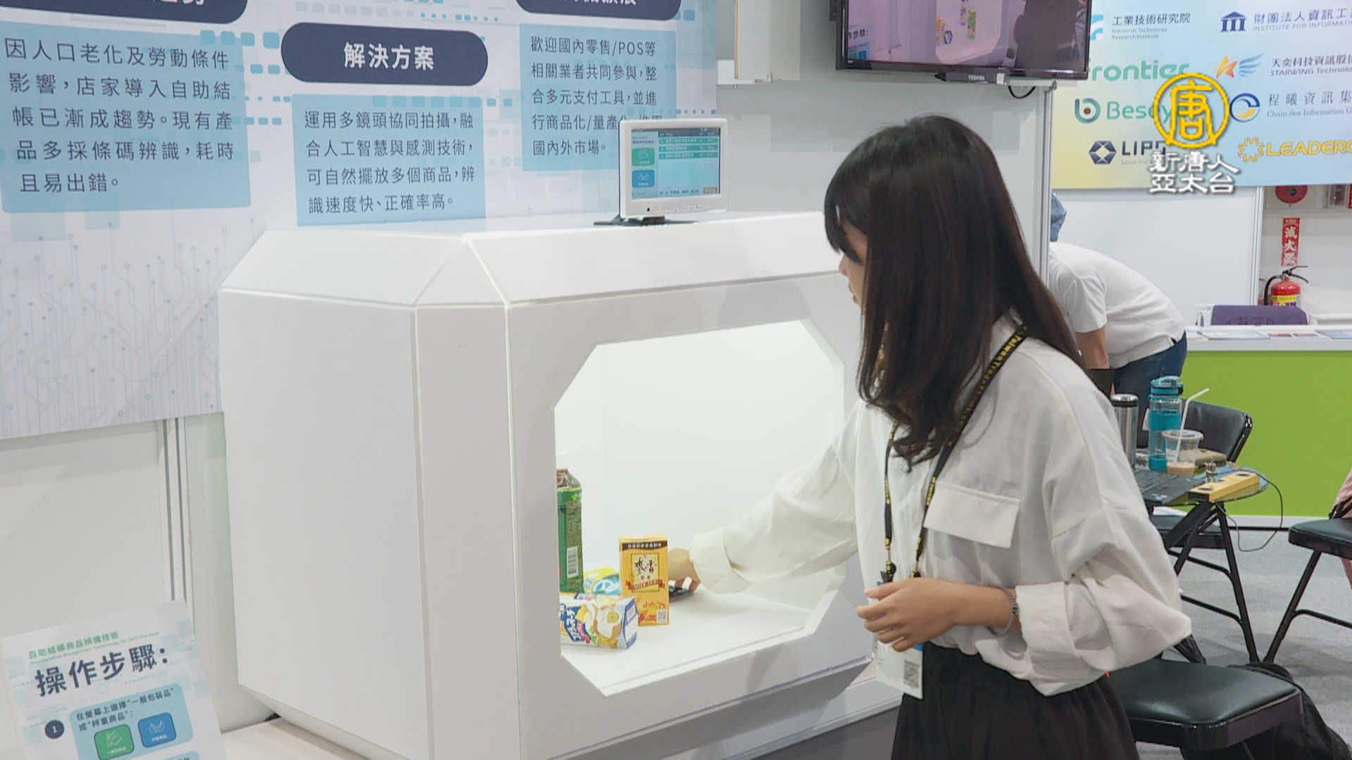 人工智慧應用在無人商店,結合人工智慧跟感測技術,民眾在結帳時可以自由擺放商品,就會立即辨識,藉由這套自助結帳系統,提升結帳速度。