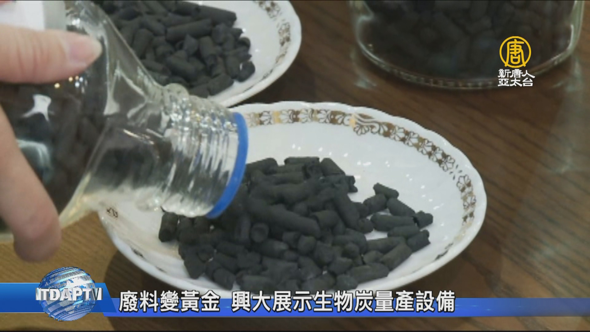 【新唐人亞太台 2018 年 10 月 09 日訊】中興大學,展示全台第一座 生物炭量產商業化設備,建置成本約500萬,每小時可進料100公斤,製成20公斤生物炭,將有助於國內生物炭產業的發展。