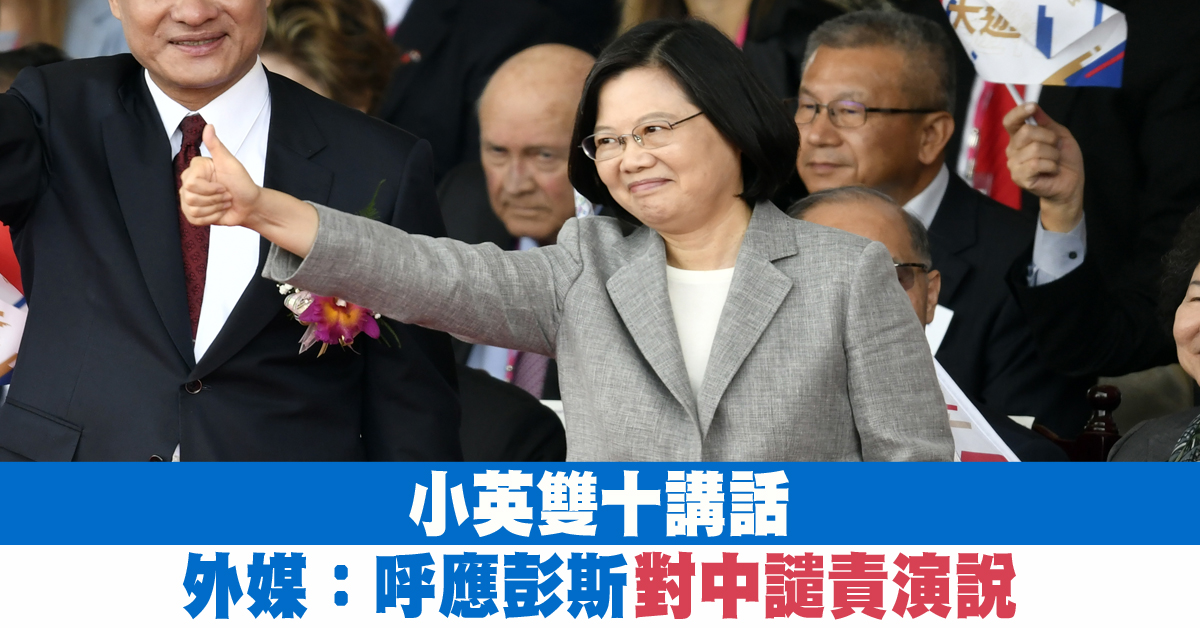小英雙十講話 外媒:呼應彭斯對中譴責演說