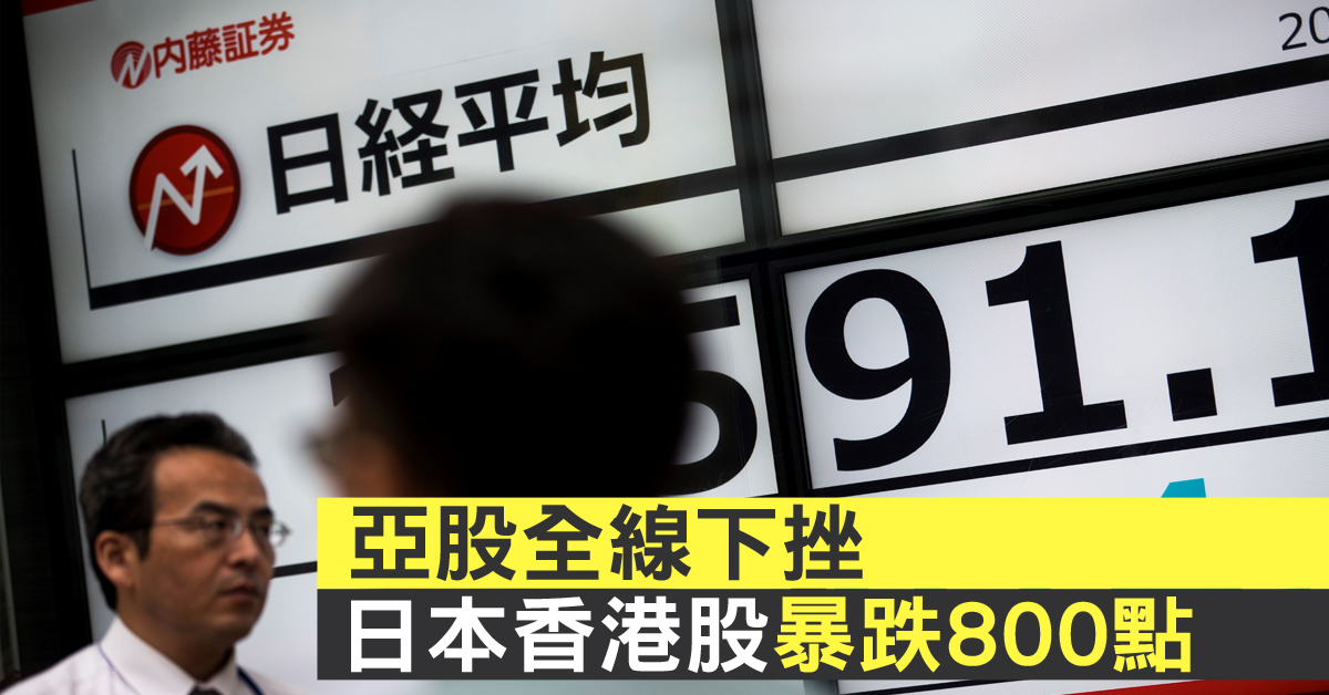 亞股全線下挫 日本香港股暴跌800點
