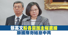 蔡英文盼各黨護主權底線 籲國際勿姑息中共