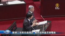 【新唐人亞太台 2018 年 10 月 12 日訊】午報頭條來看到,行政院長賴清德今天(12)宣布,將停建深澳電廠。上午賴清德在立法院備詢時,經濟部長沈榮津表示,觀塘天然氣第三接收站完工之後,可取代深澳電廠發電,因此決定停建,行政院長賴清德表示,支持經濟部的決定,宣布停建深澳電廠。 今天下午,經濟部將召開記者會,公開回應提問。
