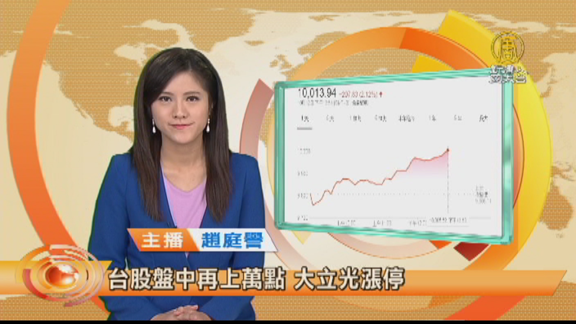 【新唐人亞太台 2018 年 10 月 12 日訊】歡迎回來,再來看到台股消息,擺脫股災,台股今天由黑翻紅,上漲超過200點,就在剛剛盤中,台股重上萬點,股王大立光也漲停。