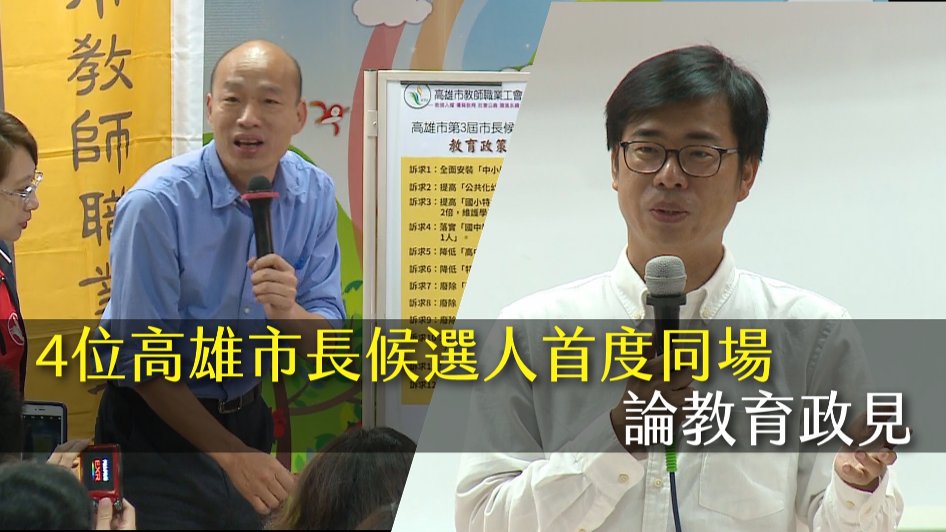 4位高雄市長候選人首度同場亮相、但沒同台,各自論述教育政見,對於讓教師回歸專業、裝設冷氣等問題都有相當共識,並提出解決方案。